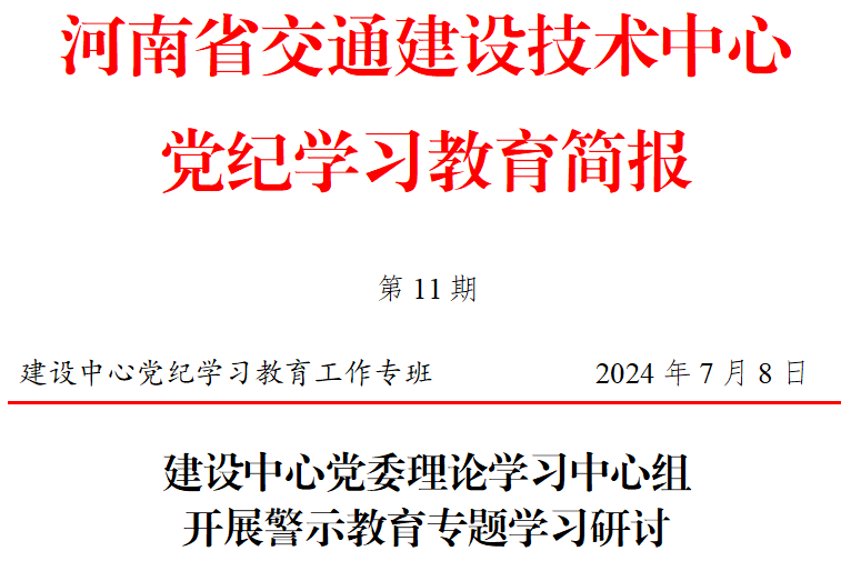 会议强调,开展警示教育是履行全面从严治党主体责任的一项重要举措,一是要利用好周五学习日、主题党日等载体,不定期开展警示教育,不断增强严守党的纪律规矩的思想自觉、行动自觉。二是要结合当下开展的全省交通运输系统群众身边不正之风和腐败问题集中整治、违规吃喝专项整治等,对照检查自身风险问题,加强防范整改。领导干部要做好遵规守纪的表率,做到严以律己、严负其责、严管所辖,带领中心干部职工高质量完成各项工作任务,在交通强国建设河南实践中展现好草榴社区 的担当作为。