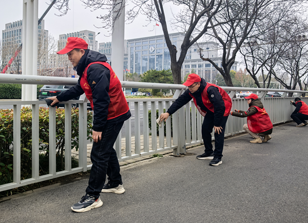活动现场,志愿者们穿上红色马甲自备簸箕、扫帚、水桶、盆子、抹布等工具,以饱满的热情投入志愿服务活动中。有的擦拭主干道隔离护栏、人行道护栏及公交站牌,有的清除护栏上粘贴的小广告及顽固污渍,有的拿起扫帚清理路边的落叶。经过志愿者们的清洁,道路两旁的卫生明显改善。