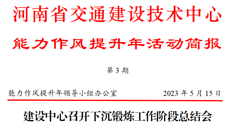 会议指出,扎实开展新入职技术人员下沉锻炼活动是中心党委着眼于服务保障当好中国式现代化河南实践中开路先锋作出的决策部署,是落实“能力作风提升年”活动要求的具体行动,对加强全省交通重点工程质量安全监管工作的组织协调、跟踪问效和督促落实,为项目建设提供有效的质量安全保障具有重要意义。活动开展以来,下沉人员坚决贯彻落实中心党委决策部署,在下沉单位和指导老师的帮助下,主动加强思想淬炼、实践锻炼,克服困难、常驻工地,踏实锤炼过硬业务本领,顺利完成了第一阶段学习目标任务。