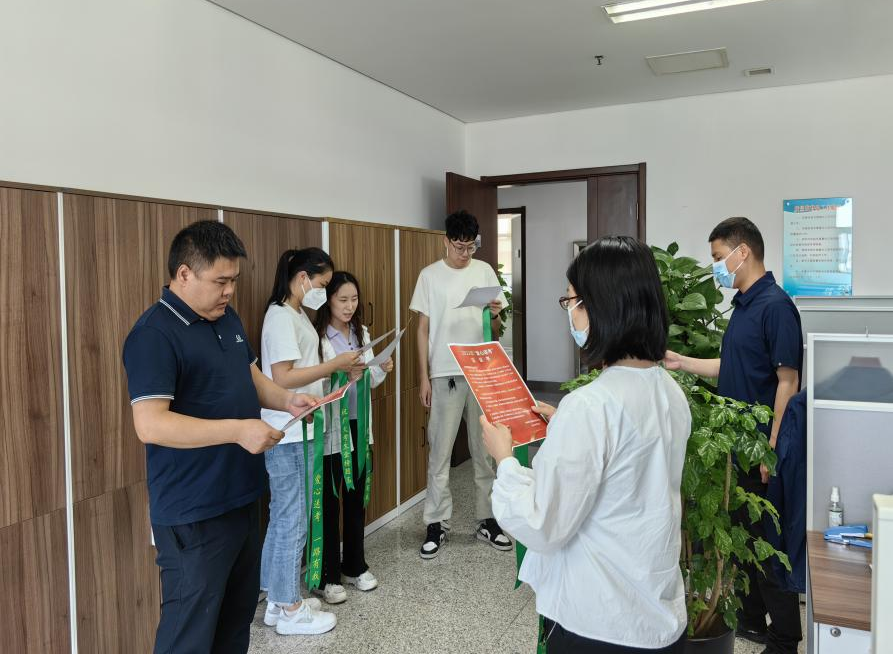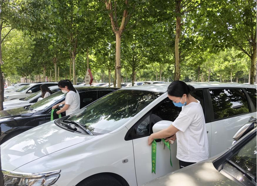 高考期间需要社会各界密切配合,共同做好保障工作,我们倡议中心职工开出爱车,为参加高考的学子们提供免费乘车服务;自觉遵守交通法规,安全驾驶,文明行车,不乱停乱放,为考生提供畅通的出行环境;在学校周边不鸣笛,为考生提供良好的考试环境。中心职工认真阅读倡议书后,纷纷领取“爱心助考”绿丝带,并系在后视镜上,一同开启今年的爱心送考护考志愿行动。