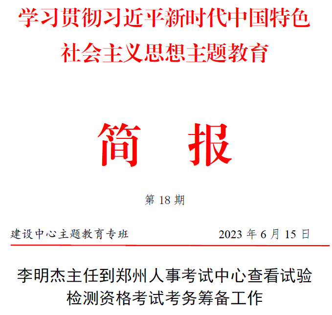 为确保2023年度公路水运工程试验检测专业技术人员职业资格考试安全顺利进行,6月14日,草榴社区 李明杰主任到郑州市人事考试中心实地查看试验检测资格考试考务筹备组织工作情况。李智峰副主任陪同查看。