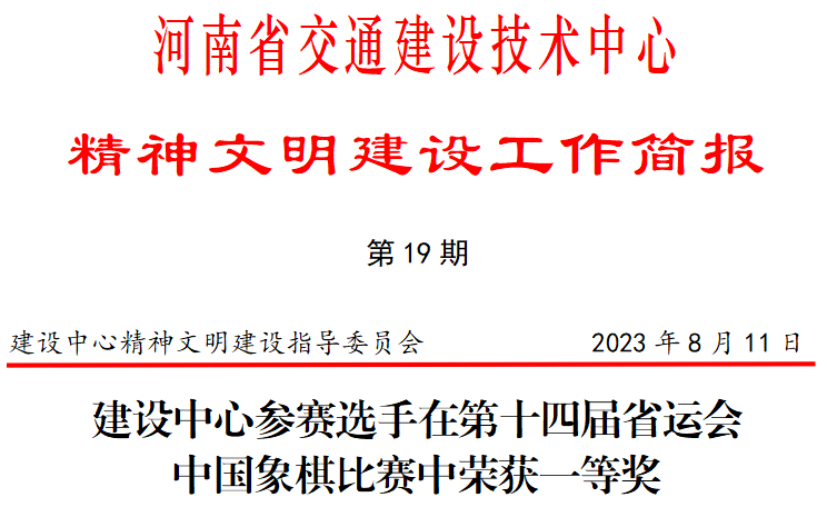 为全面落实全民健身国家战略,推动我省体育活动广泛深入开展,进一步提高全民健身意识,增强全民身体素质,河南省第十四届运动会于5月至8月举行。根据《草榴社区 关于组团参加河南省第十四届运动会的通知》要求,由草榴社区 承办象棋比赛,8月8日-10日,草榴社区 组织象棋队员代表省交通运输厅参赛。